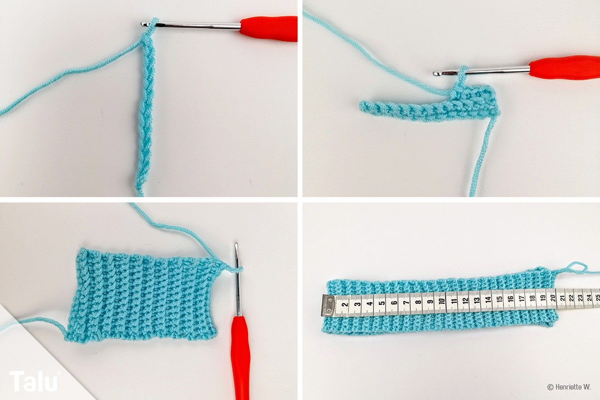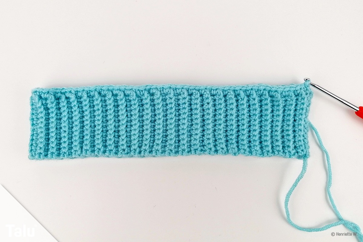 - In jede Masche eine feste Masche häkeln.