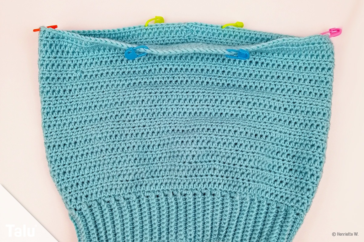 Den Bund zusammenhäkeln Dazu legen Sie die beiden Endseiten aufeinander.