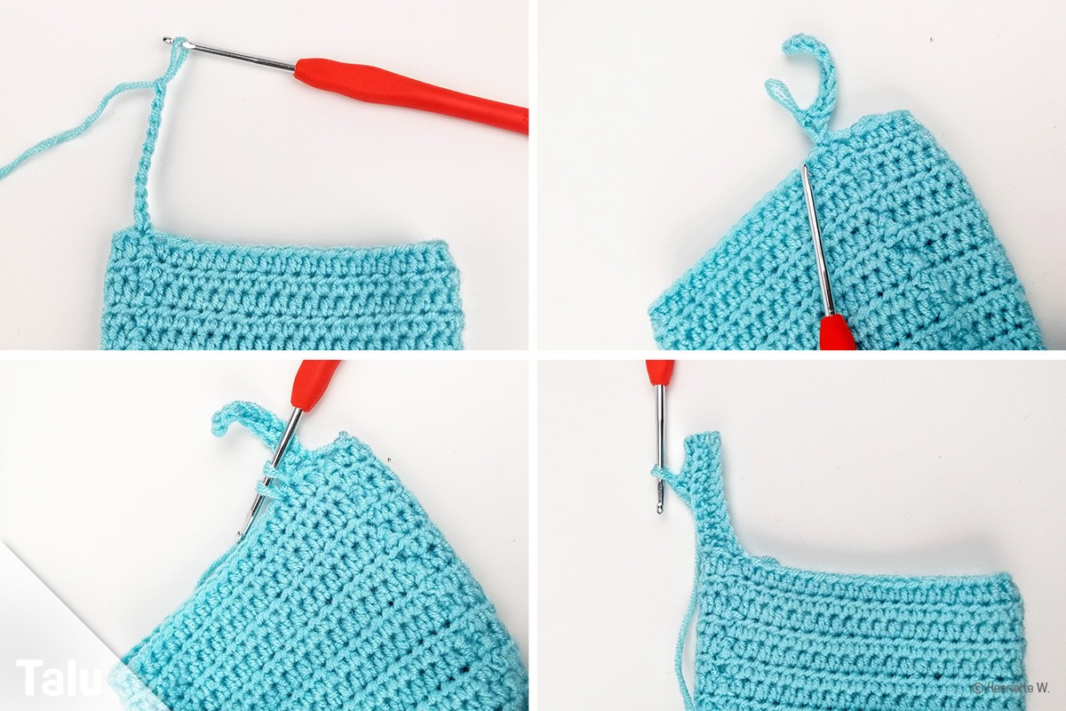 Für die zwei schmalen Trägerchen häkeln Sie wie folgt: