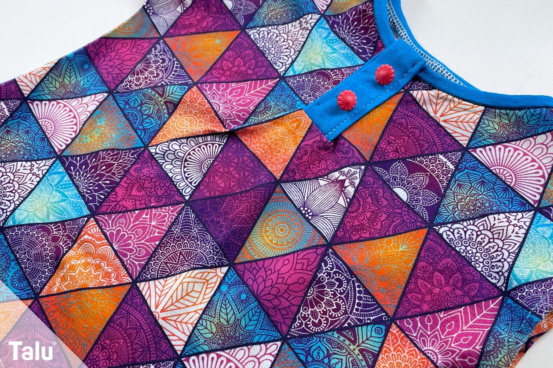 Nähen Sie die Seiten zusammen, säumen Sie die Armausschnitte sowie den unteren Saum und fassen Sie den Halsausschnitt ein.