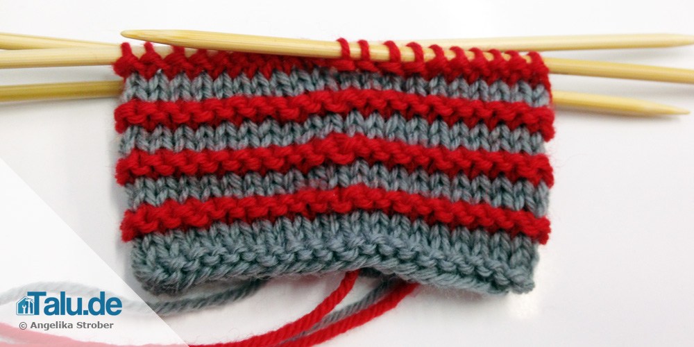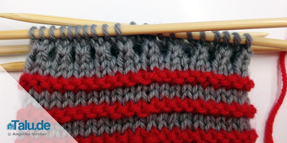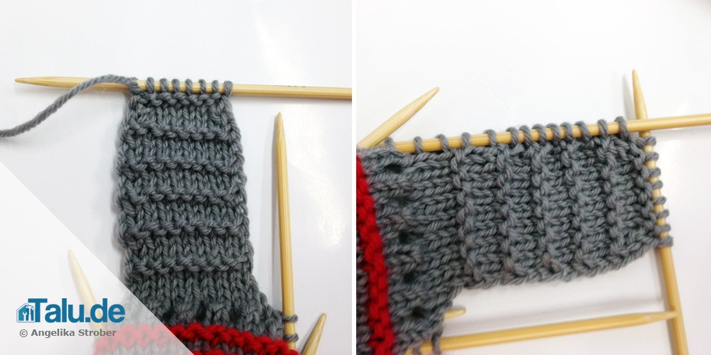 - 2 Runden rechte Maschen in Grau
