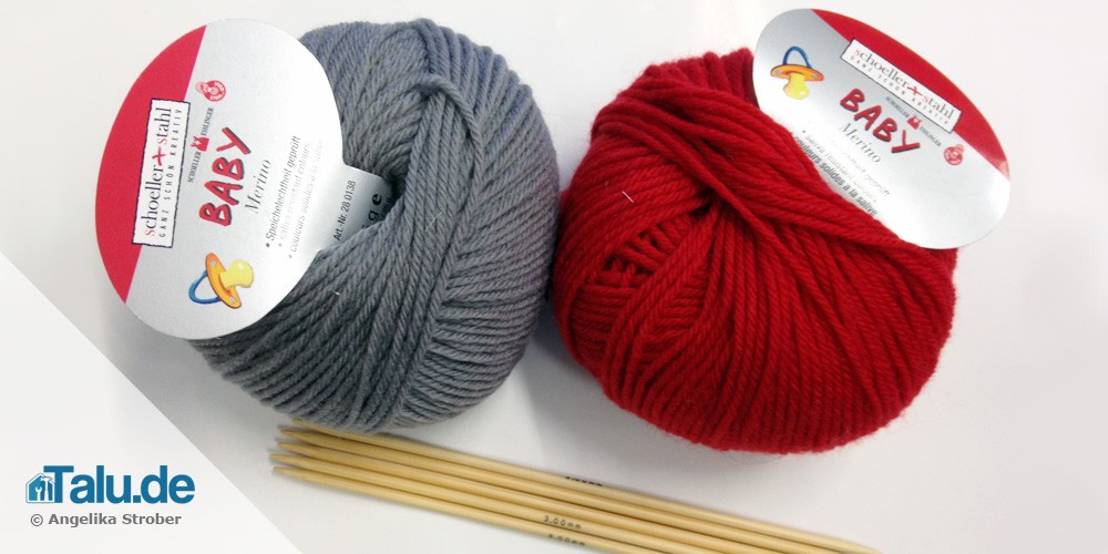 - Nadelspiel (Nadelstärke 3): Für so kleine Strickarbeiten wie die Babyschuhe eignen sich kurze Strumpfstricknadeln besonders gut. Sie haben nur eine Länge von 15 cm.