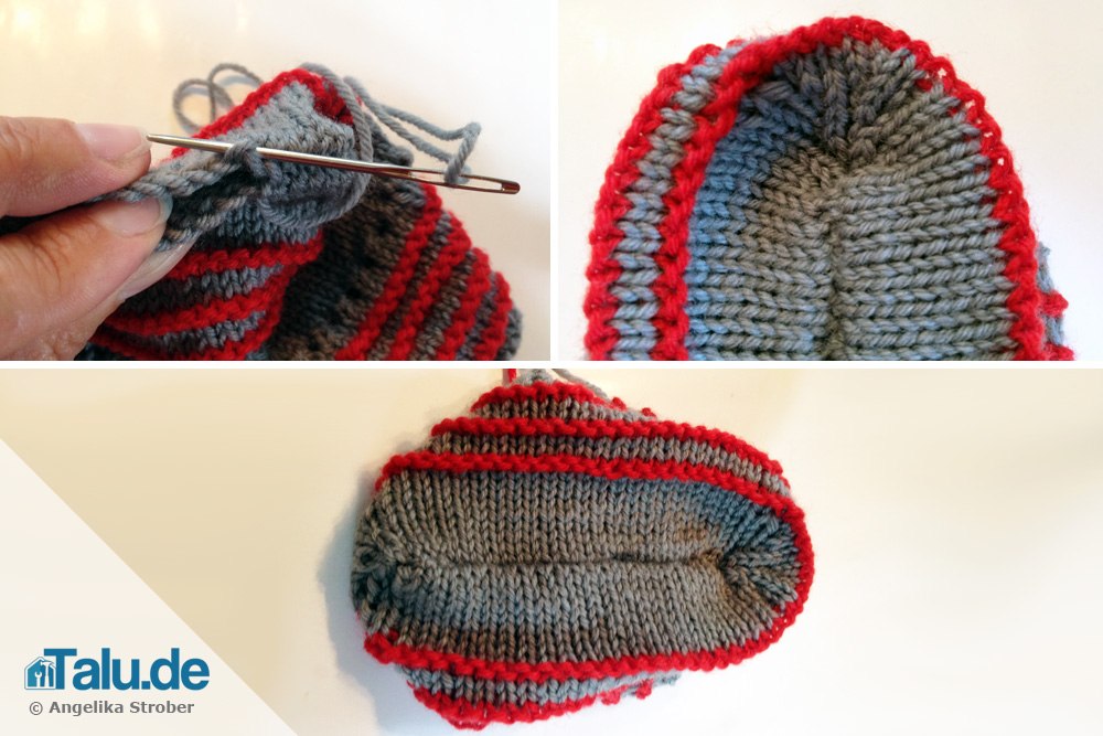 - restliche Maschen abketten und die Sohlennaht im Maschenstich zusammennähen
