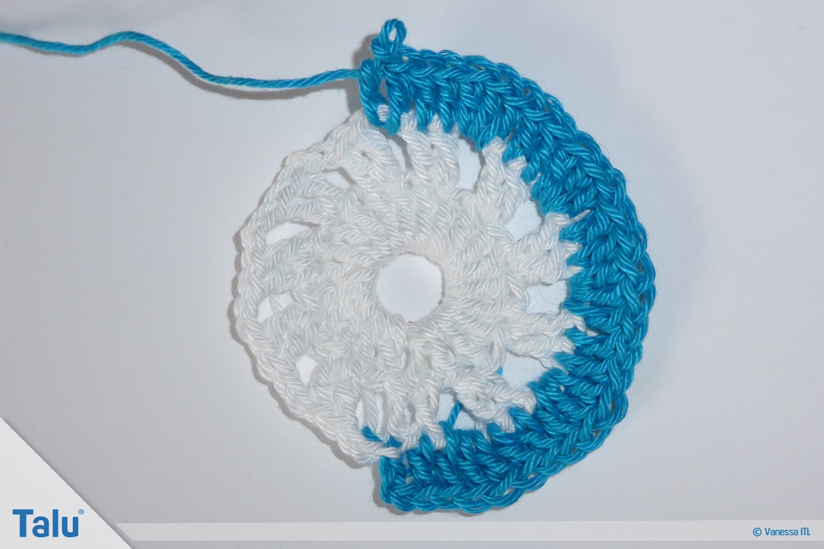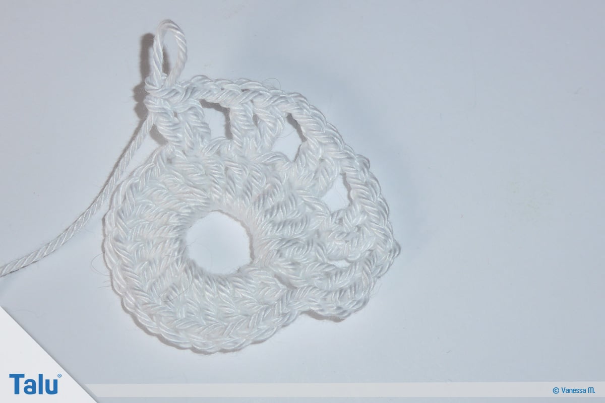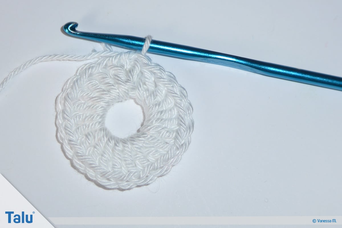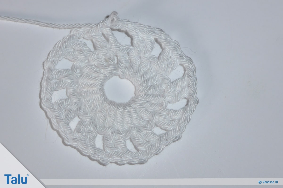 Schließen Sie die Runde mit einer Kettmasche in die dritte Luftmasche vom Anfang.