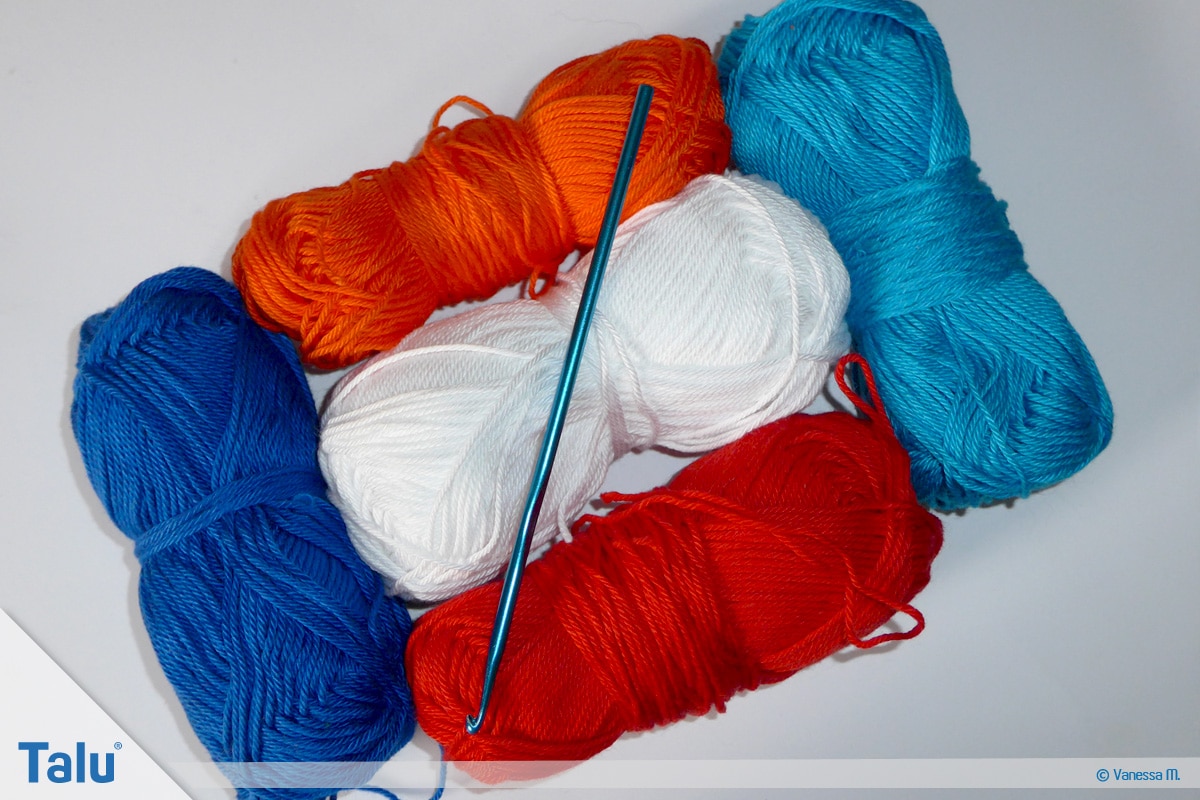 - Häkelgarn in vielen Farben (nach unserer Vorlage fünf verschiedene)