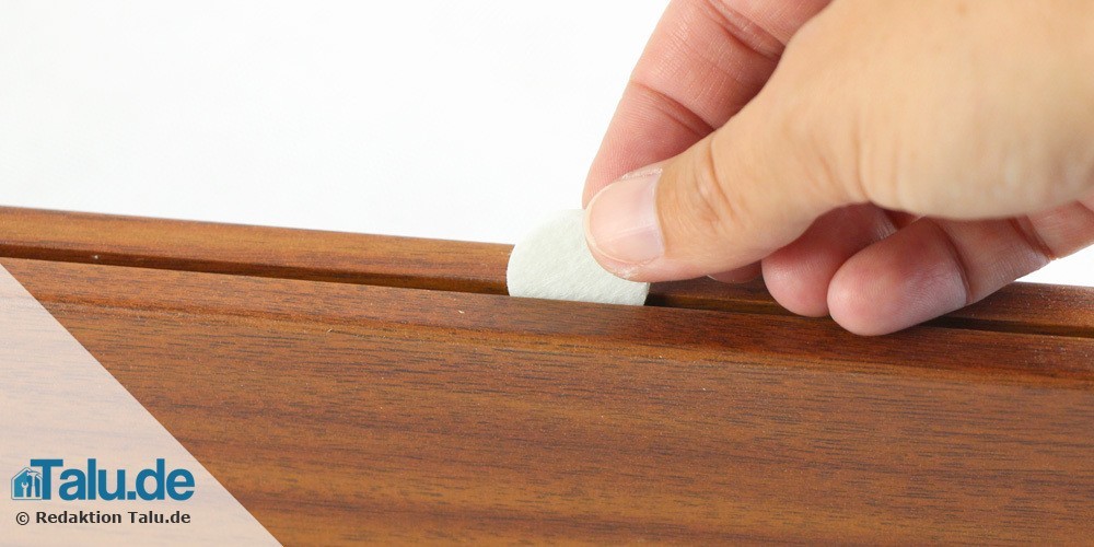 Die Auflage des Lattenrosts sollte gründlich gereinigt und getrocknet werden. Dann werden hier stabile feste Filzgleiter aufgeklebt. Wenn möglich sollten Sie diese Arbeit gleich vormittags erledigen, damit der Kleber unter den Filzgleitern ausreichend Zeit hat um zu trocknen.