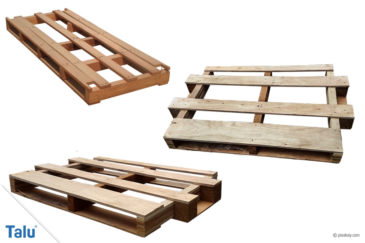 Der bequemste Weg ist es genormte Europaletten zu kaufen, da diese alle gleichgroß sind. Diese erkennt man an der Markierung „EUR“ und „EPAL“. Europaletten haben den Vorteil, dass diese markiert sind und man so erkennen kann wie diese bearbeitet / behandelt worden. Achten Sie auf die Markierung „HT“ – diese besagt, dass die Europalette hitzebehandelt wurden sind. Andere Methoden Europaletten haltbar zu machen und vor Schädlingen zu schützen wäre über den chemischen Weg gewesen, diese auf diesen Paletten wollen Sie sicher nicht Ihr Nachtlager aufschlagen.