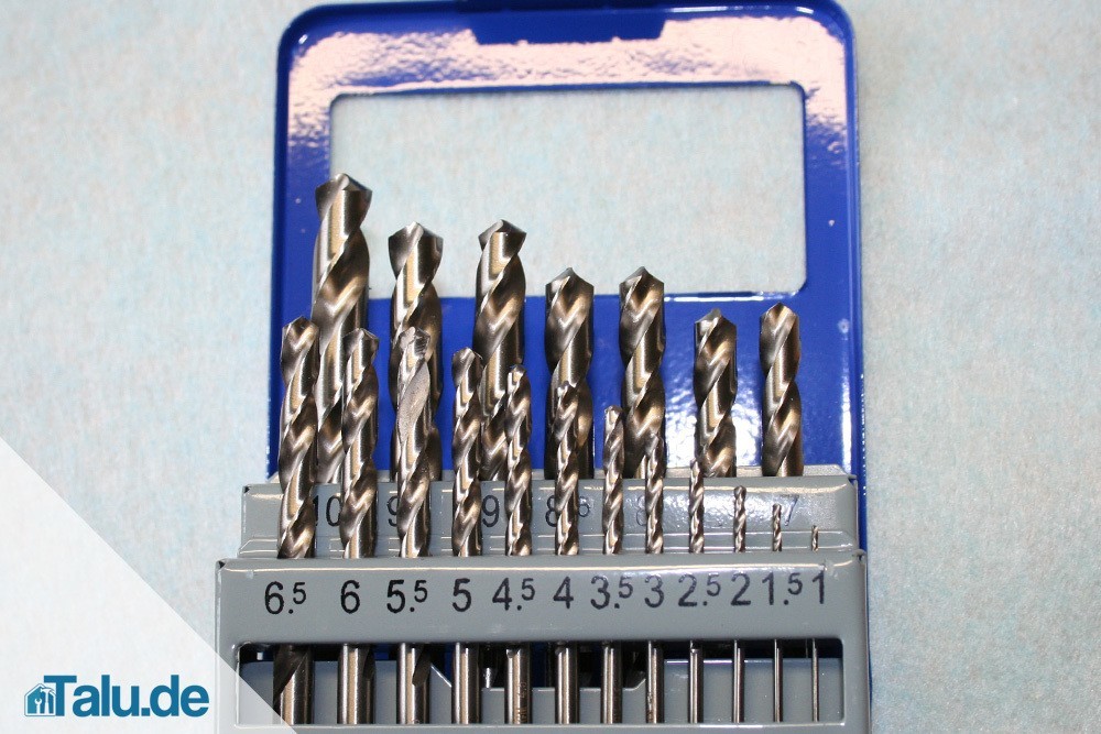 • in Ihrem Werkzeugschrank befindet sich ein vollständiges, 19-teiliges Sortiment mit Spiralbohrern der Größen 1,0; 1,5; 2,0 … bis 10,0 mm –  kostet ca. 10 bis 30 Euro