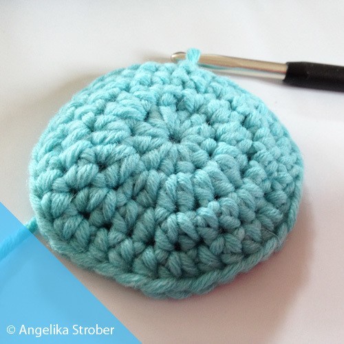 • die 7. bis 16. Runde mit halben Stäbchen häkeln, keine weiteren Verdoppelungen