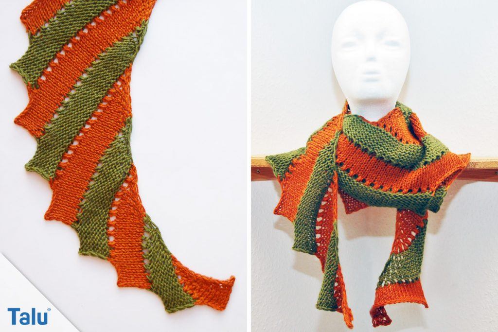 Drachenschals liegen im Trend. In dieser Strickanleitung für Anfänger erfahren Sie, wie die dekorativen Zacken entstehen. Unser Drachenschwanz kommt mit schicken Streifen und einem hübschen Lochmuster daher.
