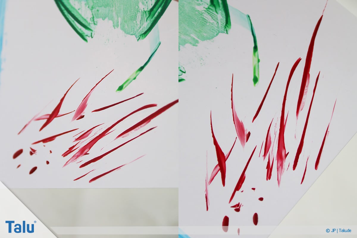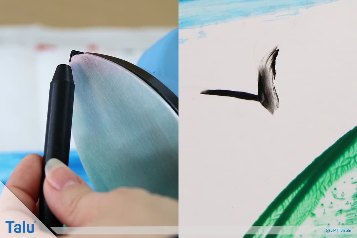 Alternative: Wenn Sie das Wachsmalgerät zügig auf eine Seite wegkippen lassen, erzielen Sie eine ähnliche Wirkung. Probieren Sie’s aus!
