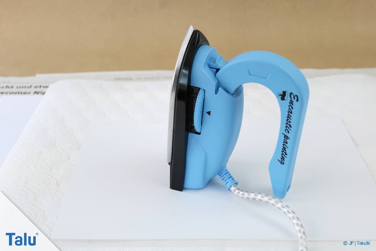 Generell ist wichtig, dass Sie das Wachsmalgerät vor jedem Auftrag einer neuen Farbe mit Küchenpapier reinigen. Dies funktioniert in der Regel wunderbar. Will sich der Ton einmal nicht ganz vom Eisen verabschieden, helfen Sie am besten mit Klarwachs nach. Tragen Sie dieses auf die Fläche auf und wischen das Ganze anschließend mit Küchenpapier ab. So geht die Reinigung schnell und einfach vonstatten.