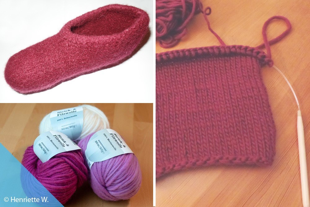 Start » Handarbeiten » DIY-Hausschuhe: Filzschuhe stricken und in Waschmaschine filzen