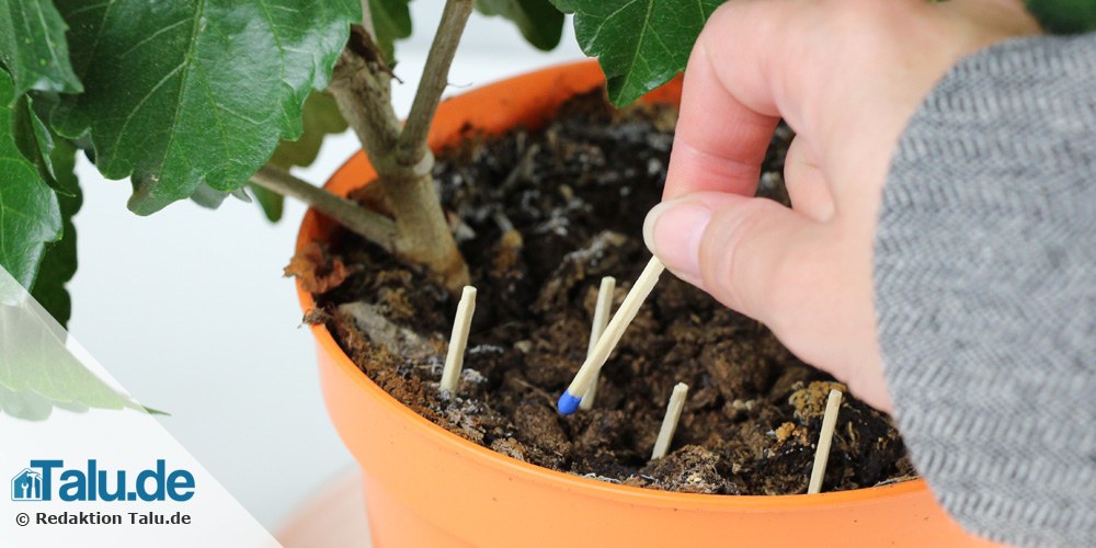 - mehrere Zündhölzer kopfüber in die Pflanzen-Erde stecken
