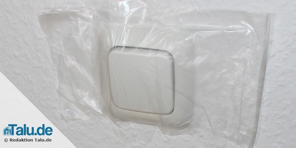 Schritt 3 – Kleben Sie Steckdosen, Lichtschalter und alle übrigen elektrischen Einbauten ab. An ihren Seiten sind ebenfalls kleine Ritzen vorhanden, durch welche der Staub gelangen kann. Der Staub würde im Inneren zu Beschädigungen führen und die Elektrik zerstören. Daher müssen alle Öffnungen sicher verschlossen werden.