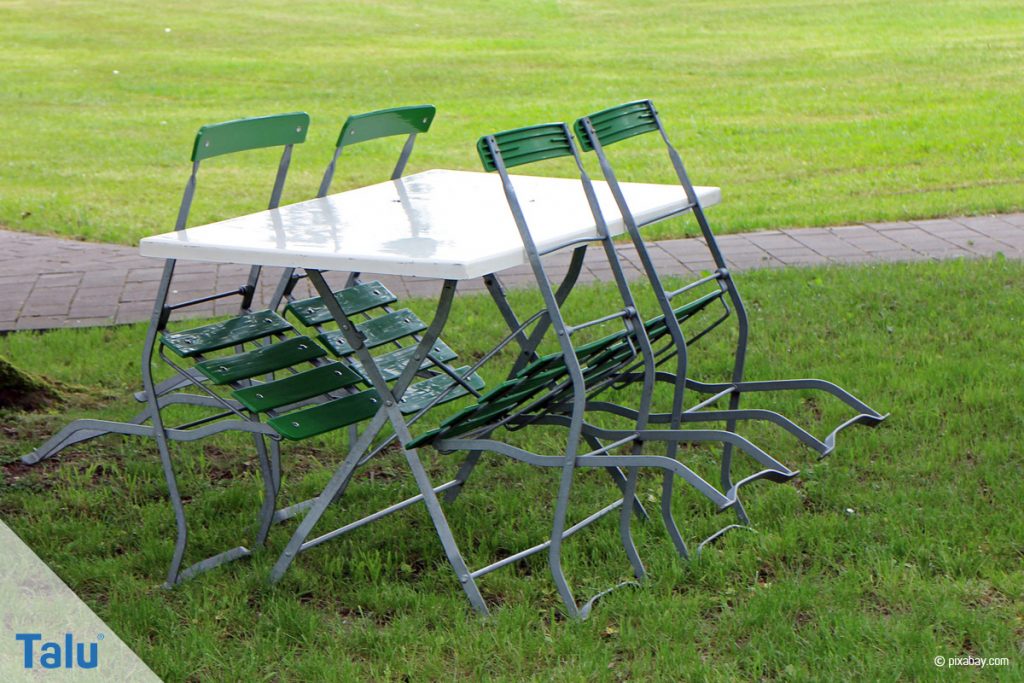 - trocknen Sie die Gartenmöbel danach sorgfältig ab, um weiteren Flecken vorzubeugen