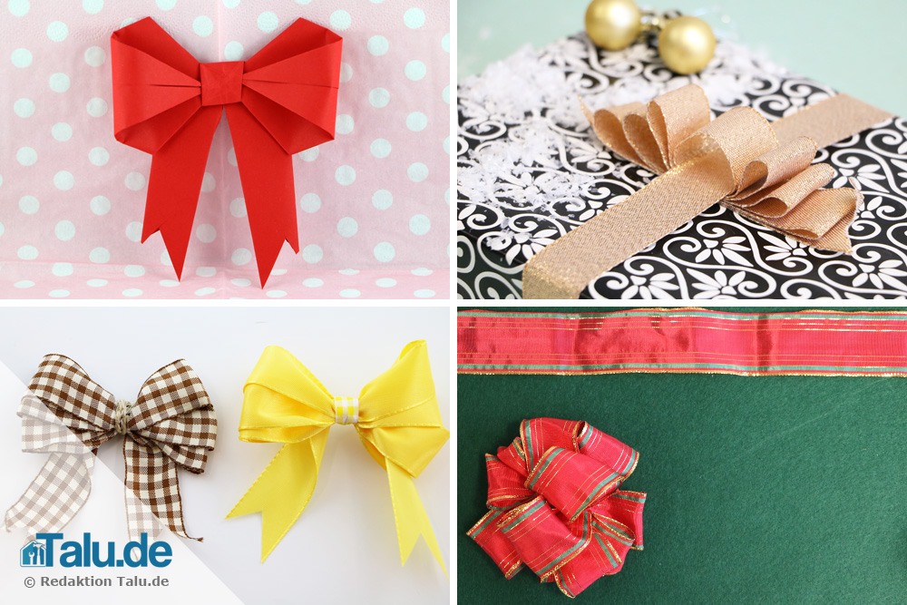 Ob an Weihnachten oder für extravagante Geburtstagsgeschenke – schöne Geschenkschleifen sind ein Muss für jede Überraschung. Wir zeigen Ihnen in dieser Anleitung vier super einfache Varianten, um Geschenkschleifen binden zu können.
