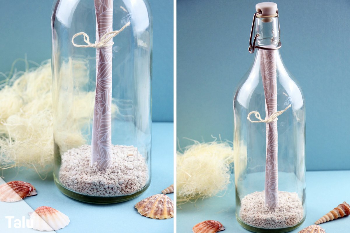 Sie ist nicht wirklich neu, aber nach wie vor schön klassisch, abenteuerlich, elegant, romantisch und begeisternd: die Flaschenpost. Alles, was Sie brauchen, ist eine möglichst edel geformte Flasche. Von dieser reiben Sie gegebenenfalls das ursprüngliche Etikett, damit sie rein und pur erscheint. Daraufhin geben Sie den Gutschein in die Flasche und verschließen sie mit einem Korken. Natürlich können Sie den Flascheninhalt auf Wunsch noch aufpeppen – mit Süßigkeiten, Geldmünzen oder anderen Elementen. Das muss aber nicht sein. In der schlichten Variante löst die Flaschenpost definitiv auch Freude aus.