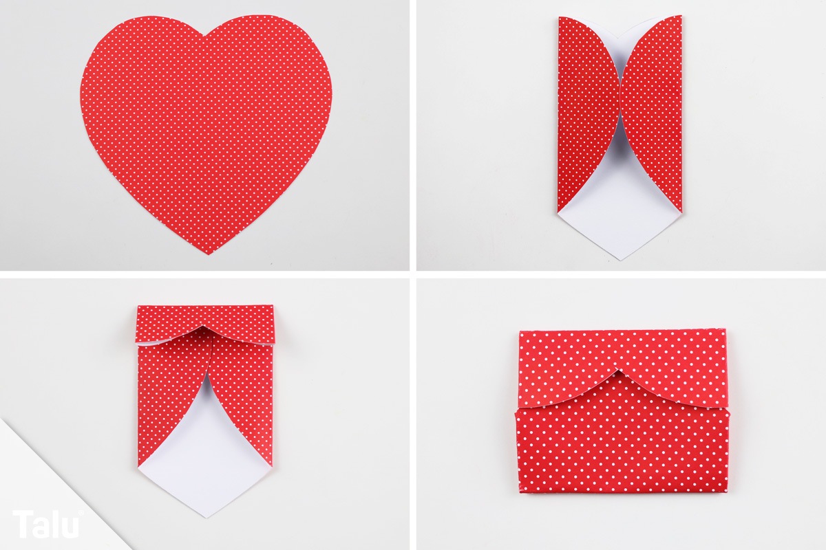 Tipp: Nun können Sie den Herzumschlag noch einmal aufklappen, um den Gutschein anzupassen und hineinzulegen. Dann wieder verschließen und fertig ist das Geschenk!