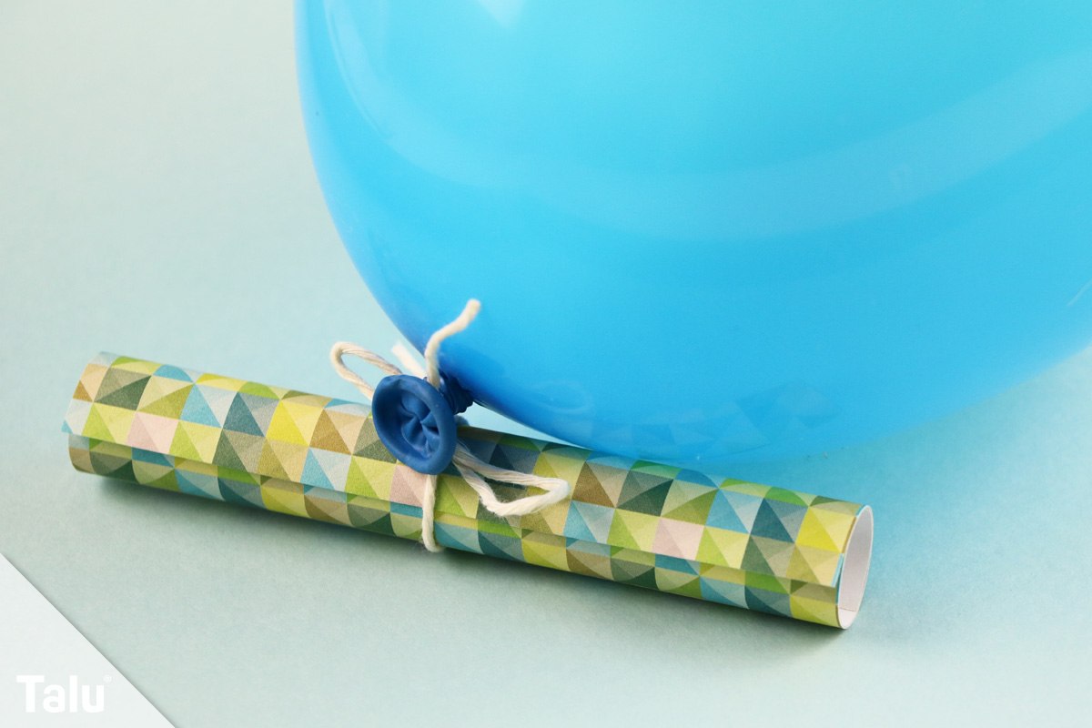 Die Übergabe des Gutscheins mit einem Luftballon zu gestalten, ist in vielen verschiedenen Situationen äußerst passend – was vor allem daran liegt, dass es inzwischen unzählige Formen von Luftballons gibt (z.B. Herzluftballons für den Valentins- oder Jahrestag, Tierluftballons für einen Zoo-Gutschein oder klassische Luftballons in bunten Farben für eine Ballonfahrt). Besorgen Sie sich also einen dem Thema des Gutscheins entsprechenden Luftballon, blasen ihn auf und verknoten ihn. Dann rollen Sie das „Leckerli“ zusammen und binden es mit farblich passendem Geschenkband um den verknoteten Ballonbereich.