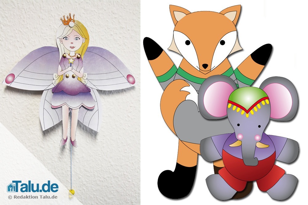 Wir haben alle Vorlagen auch in nichtfarbiger Variante für Sie bereitgestellt. So können Sie den Elefanten, die liebreizende Fee oder den Fuchs nach dem Ausdrucken selbst bemalen. Am besten klappt das mit Acrylfarben. Das Ausmalen mit Filzstiften ist natürlich auch möglich.