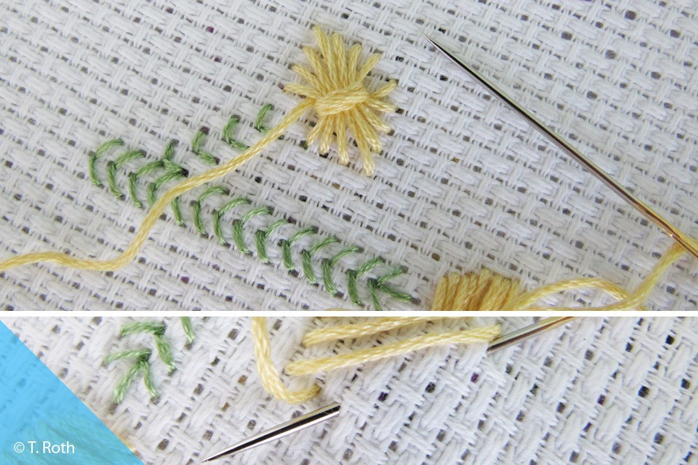 Der Knötchenstich wird gerne dazu verwendet, kleine, kreisförmige Details im Stickbild zu betonen. Bei floralen Motiven markiert man ...