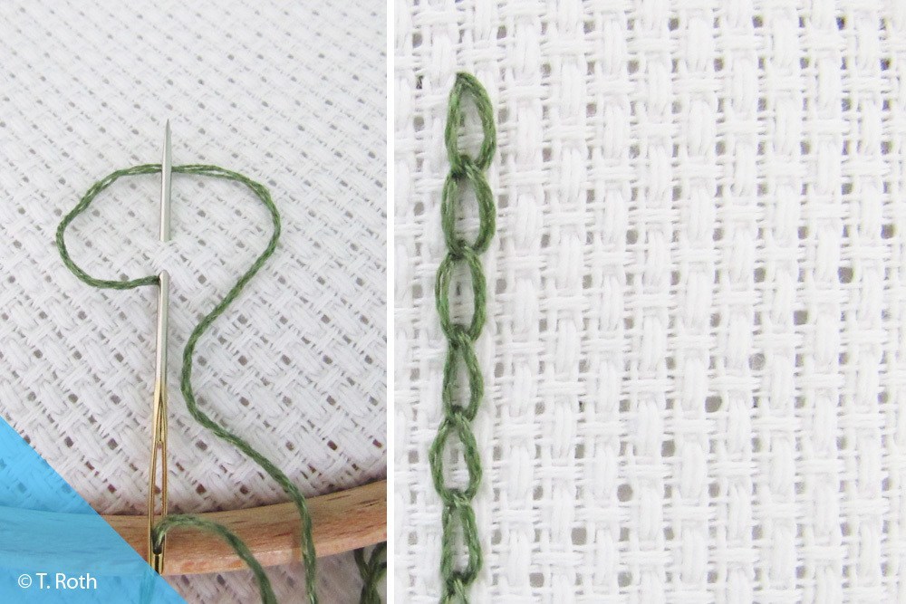 Der Kettenstich eignet sich hervorragend, um – wie der Name schon sagt – Ketten zu sticken. Diese können einen Saum schmü...