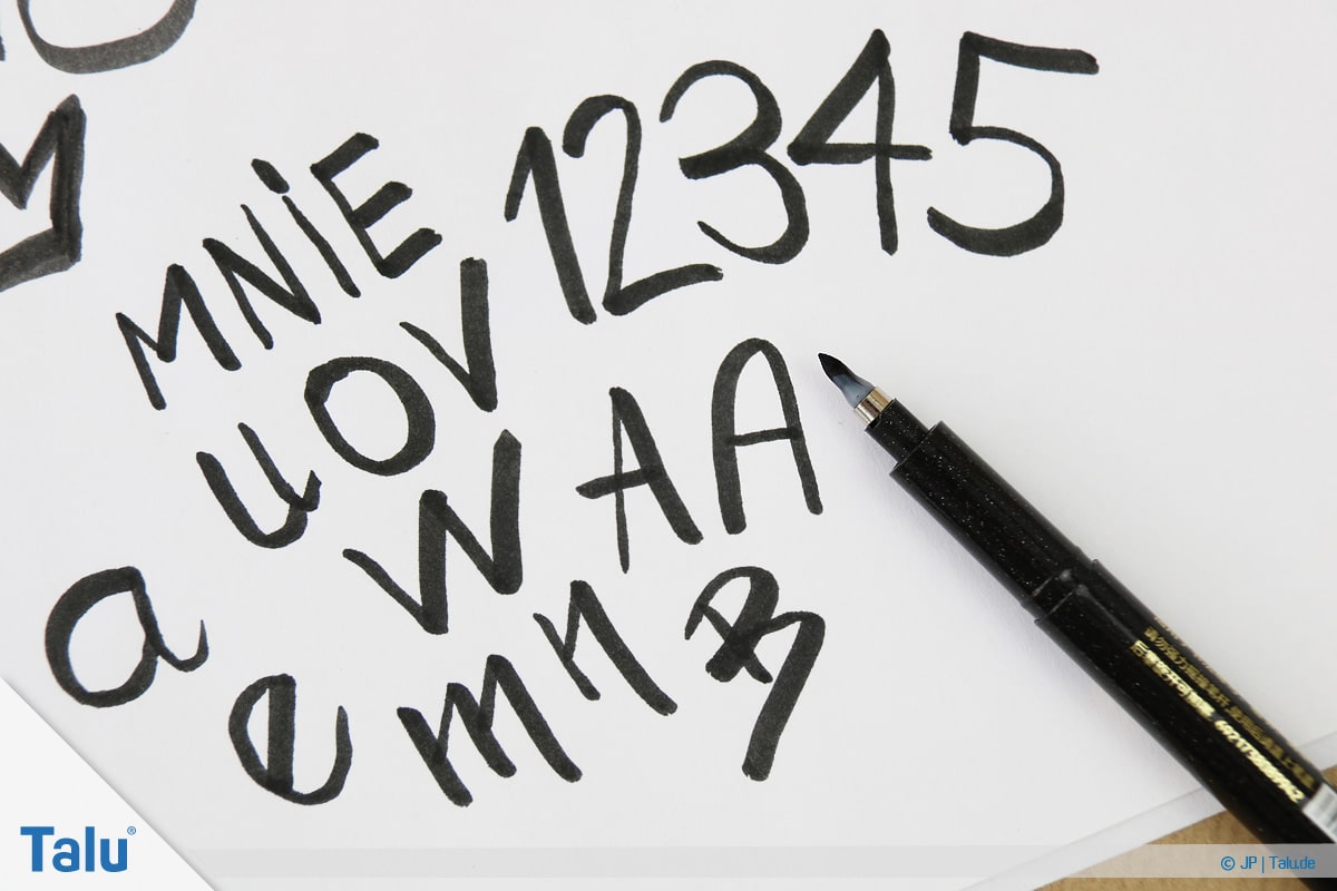 Handlettering lernen, Anleitung mit Übungsblättern, Buchstaben und Zahlen austesten