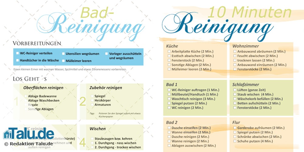 Mit unseren kostenlosen Checklisten und Vorlagen wollen wir Ihnen das Putzen angenehmer machen. Die liebevoll gestalteten Vorlagen können Sie einfach ausdrucken und aufhängen.