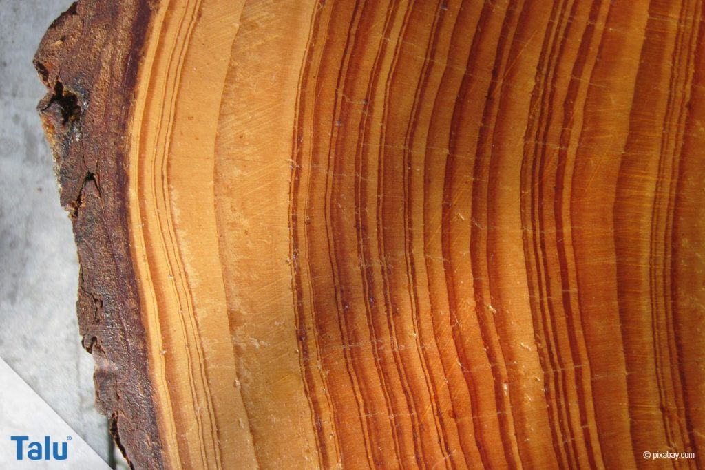 Holz wächst auf zwei Arten: Der Baum streckt sich beim Wachstum der Sonne entgegen. Gleichzeitig wächst er Jahr für Jahr in der Breite. Er erzeugt damit die notwendige Querstabilität, die das Längenwachstum erforderlich macht. Andernfalls würde er schnell umfallen oder abgeknickt werden. Das Längenwachstum geschieht am Baum durch eine Streckung seiner Fasern. Die Fasern eines Baumes können deshalb sehr lang, aber auch sehr dünn werden. Das Wachstum in die Breite geschieht an einem Baum aber durch die sogenannte Ringbildung. Jedes Jahr fügt der Baum einen weiteren Außenring zu seinem Stamm hinzu. Deshalb kann man anhand der Jahresringe exakt ablesen, wie alt der Baum ist.