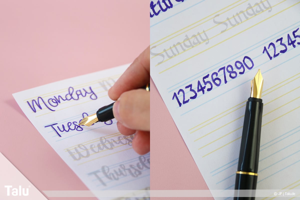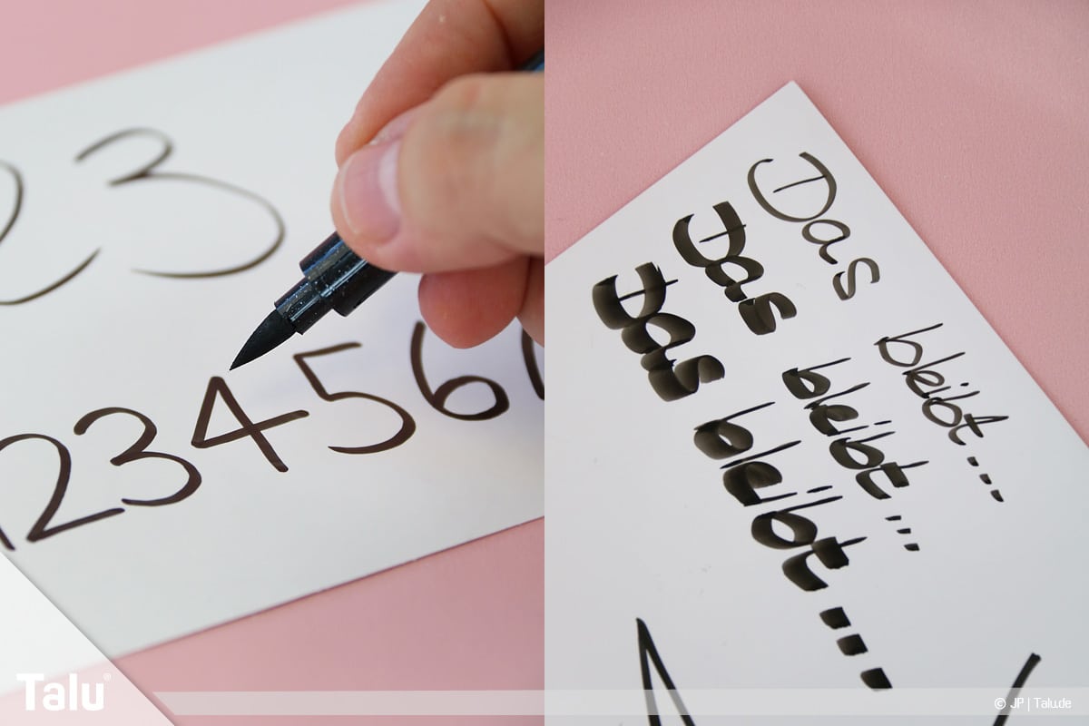 Kalligraphie lernen, Anleitung für Anfänger, Zahlen und Worte mit Kalligraphie-Filzstift üben