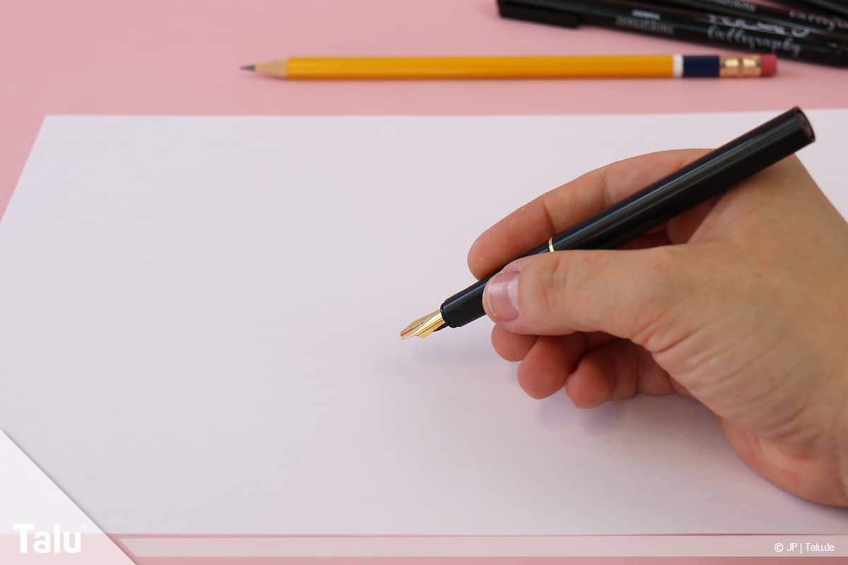 Kalligraphie lernen, Anleitung für Anfänger, Federhalter in die Schreibhand nehmen