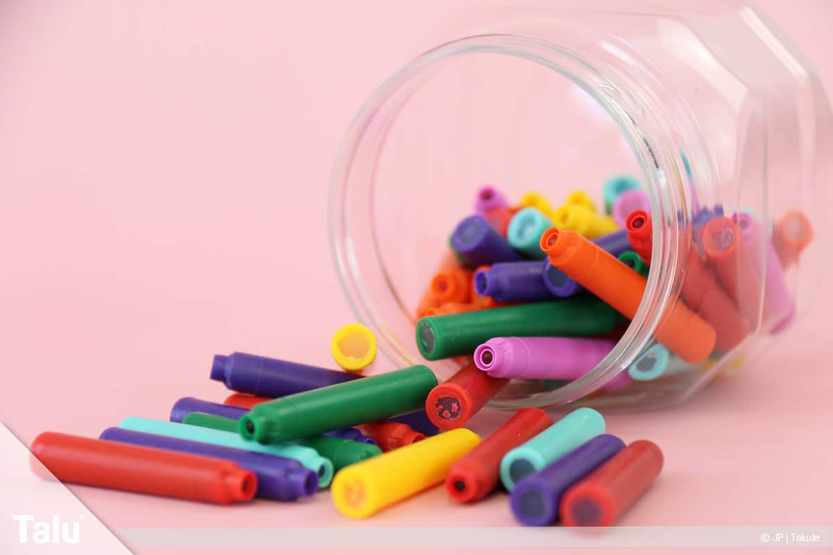 Kalligraphie lernen, Anleitung für Anfänger, bunte Tintenpatronen für Kalligraphie-Füller