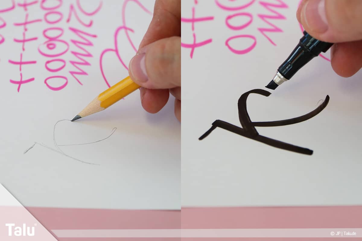 Kalligraphie lernen, Anleitung für Anfänger, Buchstaben und Worte mit Bleistift vorzeichnen