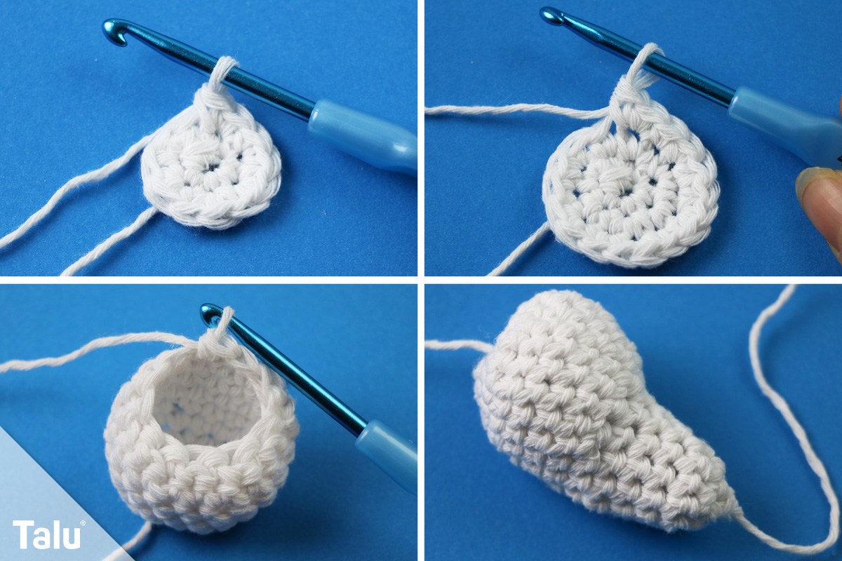 Die Ohren werden ebenfalls in Spiralrunden gehäkelt.