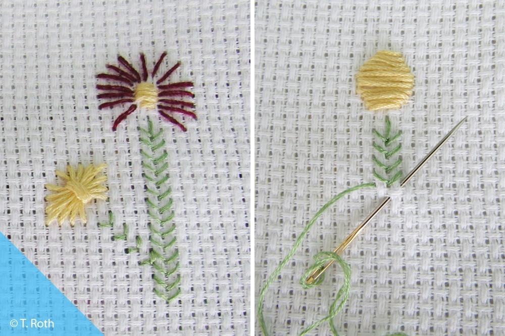 1. Nadel von hinten nach vorne durch den Stickgrund stechen