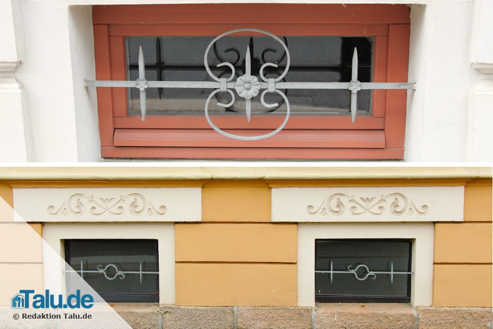 Die Fenstergitter sind meistens aus Stahl, der galvanisch verzinkt wurde. Einige Modelle müssen Sie jedoch selbst streichen. Das ist nicht besonders sinnvoll, denn wenn das Eisen nach einigen Jahren an Korrosion leidet, lässt es sich eventuell leicht aus der Laibung brechen.
