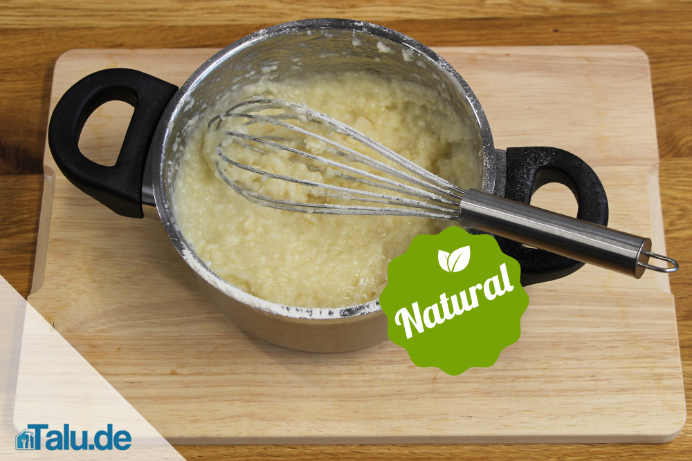 Tipp: Da es sich um eine haftende Menge handelt, sollten Sie den Kleister vor dem Erkalten umfüllen. Ansonsten gestaltet sich die Reinigung des Kochtopfes besonders schwer.