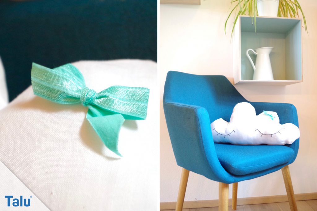 Ob für die Couch, als Zierkissen für Stühle oder zum Kuscheln im Bett: Ein Kuschelkissen kann man immer brauchen und gibt nicht nur optisch einiges her! In der folgenden Anleitung zeige ich Ihnen, wie Sie eine hübsche Wolke mit Schlafaugen nähen. Die Augen sticken wir ganz einfach mit Nadel und Garn per Hand, der Reißverschluss befindet sich auf der Unterseite des Kissens und ist somit fast unsichtbar.