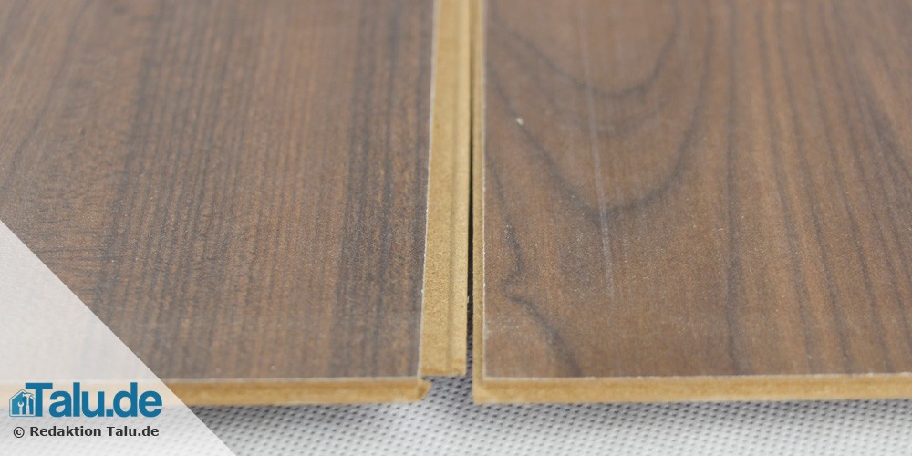 Vor allem die Endstücke, die bei der Verlegung geschnitten werden mussten, sind stark gefährdet. Vom Werk aus ist Laminat immer leicht versiegelt, doch an den Schnittkanten ist dieser Schutz natürlich nicht mehr gegeben. Außerdem kann bei einem Klicklaminat, die Feuchtigkeit in die Nut- und Federverbindung laufen und auf der feinen Federleiste stehen bleiben. Dadurch haben Sie keine Möglichkeit mehr, diese Feuchtigkeit wieder abzuwischen.