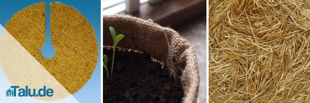 - entfernte/verblühte Pflanzenteile um ihn herum als schützende Schicht auf dem Boden