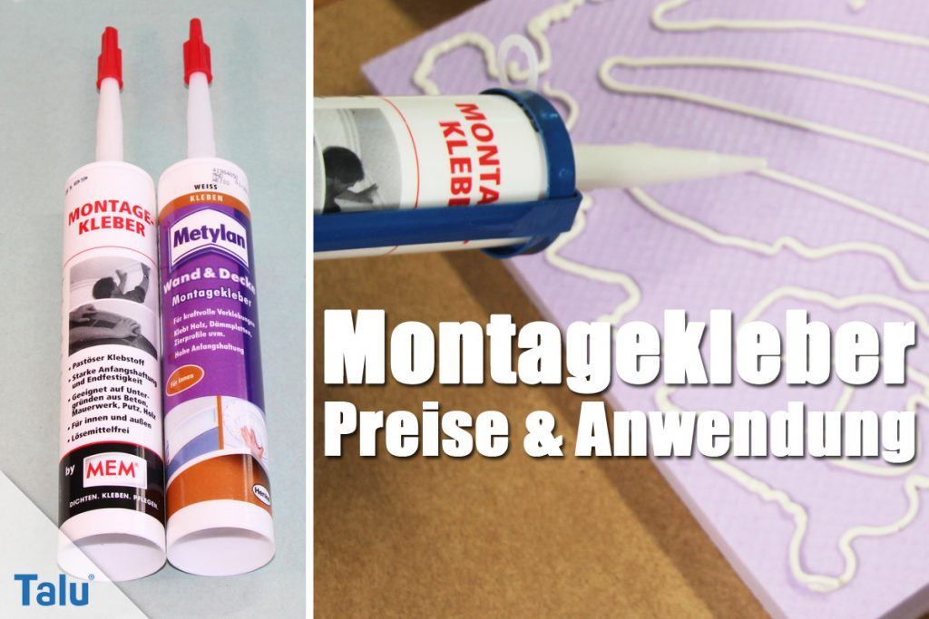 - Metylan Wand & Decke Montagekleber: Preise ab 2 Euro pro Kartusche mit 370 Gramm für die Anwendung Innen.
