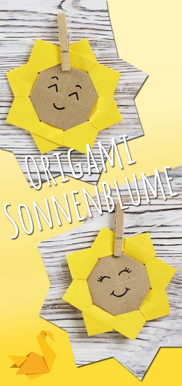 Hinweis: Diese Origami Sonnenblume kann perfekt als kleiner Bilderrahmen verwendet werden. Nehmen Sie einfach ein Foto und schneiden Sie es so zu, dass es in die Laschen passt.