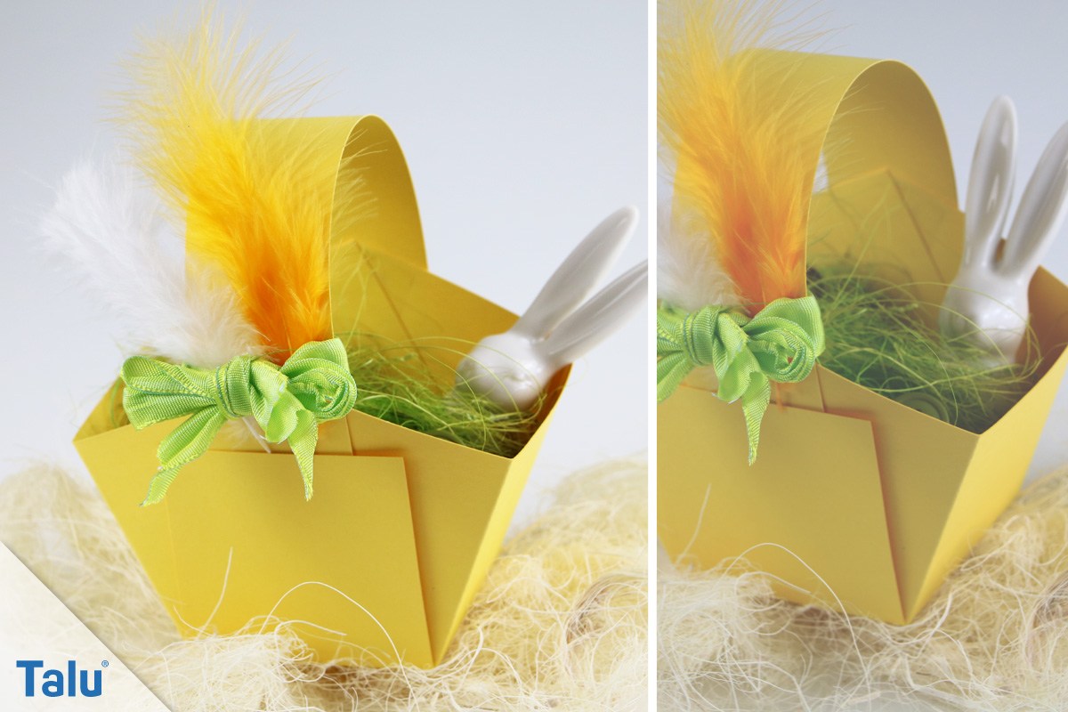 das „Einfache Osterkörbchen“ zeichnest du dir auf einem Stück Papier an und faltest es dann nach unserer Anleitung. Das geht ganz schnell und für dieses „Einfache Osterkörbchen“ brauchst du so gar keine Vorlage zum Ausdrucken. Wir wünschen dir viel Spaß beim Osterkörbchen basteln und beim weiteren Stöbern auf talu-de.pro!
