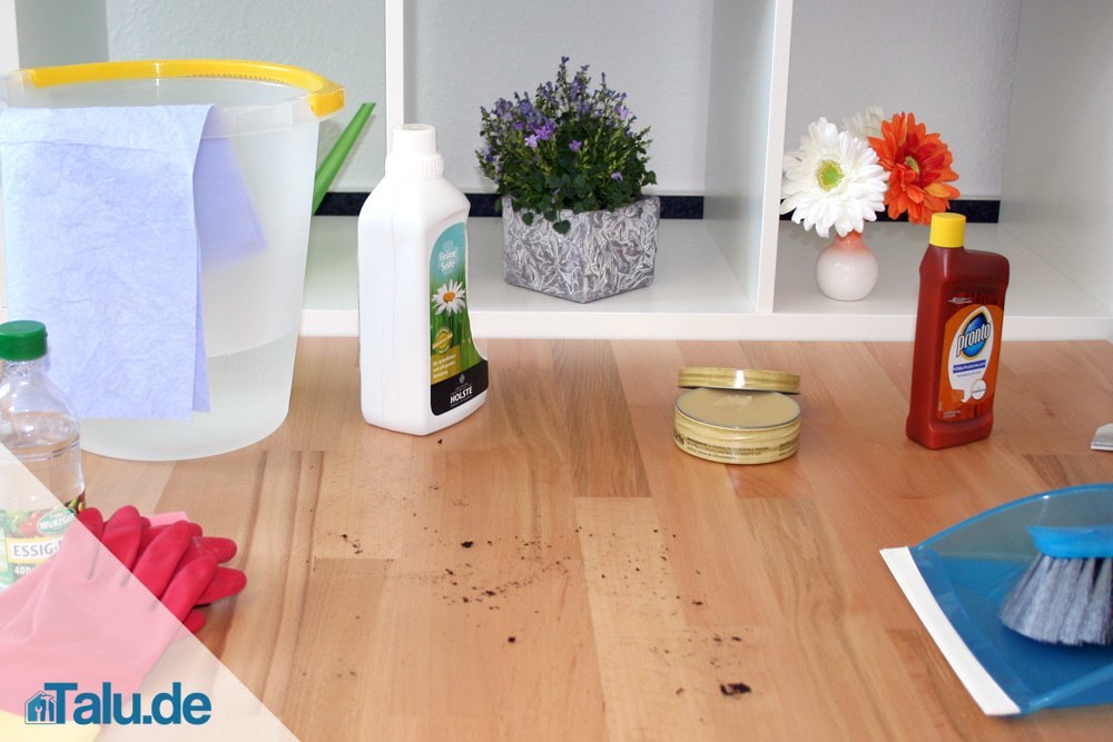 - lauwarmes Wischwasser mit einigen Tropfen Holzseife