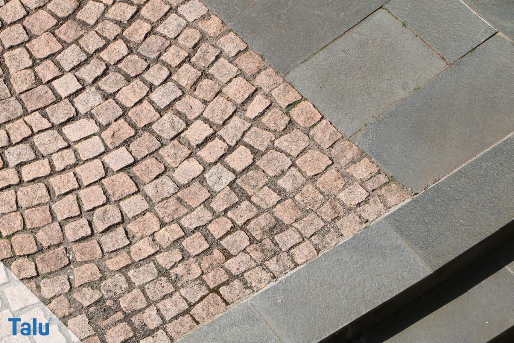 Natursteinpflaster: Natursteinpflaster werden mit einem breiten Fugenabstand angelegt. Sie sind in Bezug auf die Regenversickerung vorteilhaft. Allerdings können Wurzeln durchdringen und es handelt sich um einen atmungsaktiven Untergrund. Dadurch erhöht sich der Bewuchs durch Unkraut und der Aufwand bei der Pflege ist größer.
