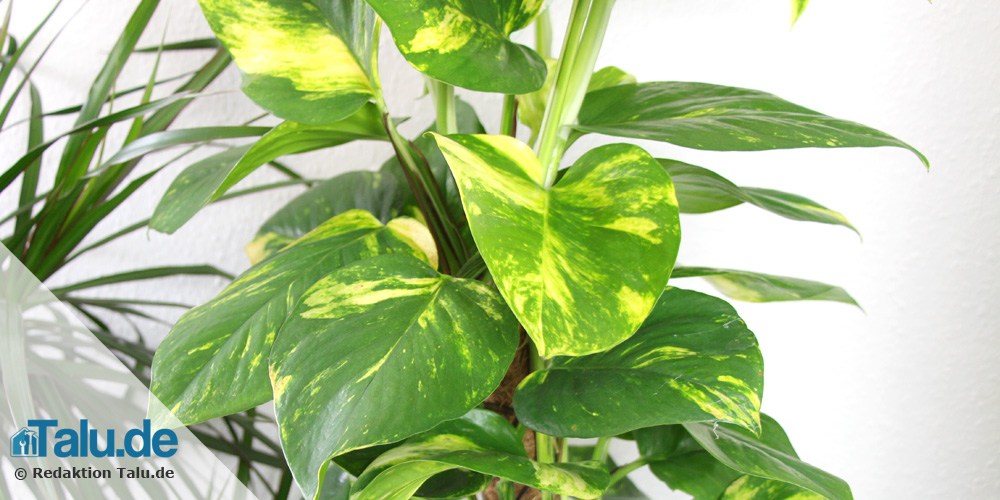 Die Efeutute ist eine häufig kultivierte Rankenpflanze mit grünen oder grün-weiß-gescheckten Blättern. In ihrer tropischen Heimat rankt sie bis zu zwanzig Metern hoch und auch im Zimmer können die Triebe eine Länge von mehreren Metern erreichen. Man kann sie entweder an einer Rankhilfe entlangführen oder sie als Ampelpflanzen pflegen. Wenn einige Teile der Triebe genügend Licht bekommen, können die übrigen auch lichtarme und schattige Zonen durchranken, ehe sie wieder in hellere Bereiche kommen. So können Wände dekorativ mithilfe von Spalieren begrünt werden, an denen sich die Efeutute entlangrankt.
