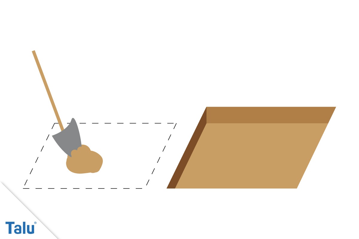 Wie jedes anständige, gemauerte Bauwerk beginnt auch der irdene Räucherschrank mit einem ordentlichen Fundament. Dazu wird ca. 1 Quadratmeter gerade abgesteckt und bis zu einer Tiefe von ca. 15 cm ausgeschachtet.