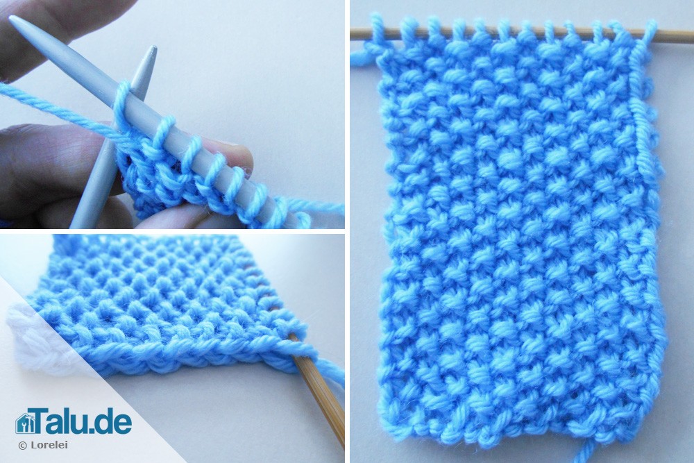 In diesem Patentmuster einige Reihen stricken.