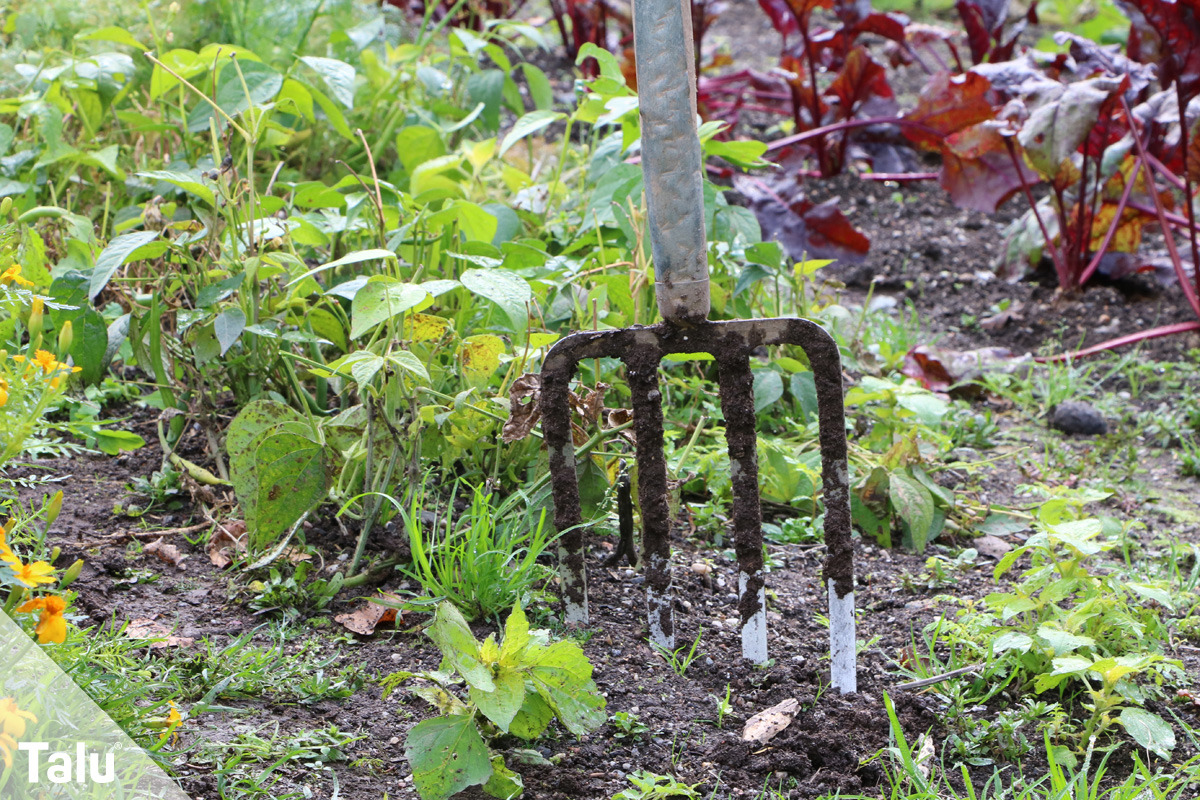 3. Grabegabel: der Klassiker. Die Grabegabel ist das ursprüngliche Werkzeug zum Lüften, ist aber körperlich anstrengend und zeitaufwendig. Zudem ist sie ungenauer wie die oben genannten Geräte, da keine Erde entfernt wird, sondern nur Löcher geschaffen werden, die die Luft an die Wurzeln bringt. Dennoch kann sich eine Grabegabel effektiv anbieten, vor allem bei kleinen Rasenflächen. Die Kosten belaufen sich auf 10 bis 40 Euro.